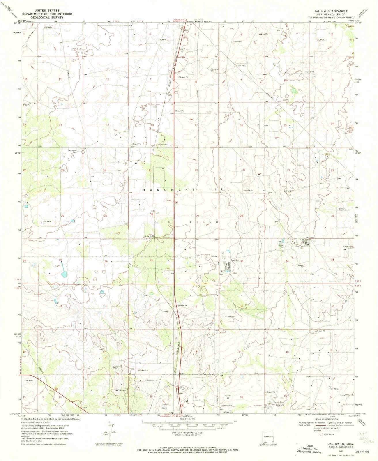 1969 Jal, NM New Mexico USGS Topographic Map Historic Pictoric